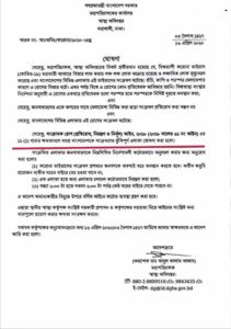 সেহেতু সংক্রামক রােগ (প্রতিরােধ, নিয়ন্ত্রণ ও নির্মল) আইন, ২০১৮ (২০১৮ সালের ৬১ নং আইন) এর ১১ (১) ধারার ক্ষমতাবলে সমগ্র বাংলাদেশকে সংক্রমণের ঝুঁকিপূর্ণ এলাকা ঘােষণা করা হলাে।